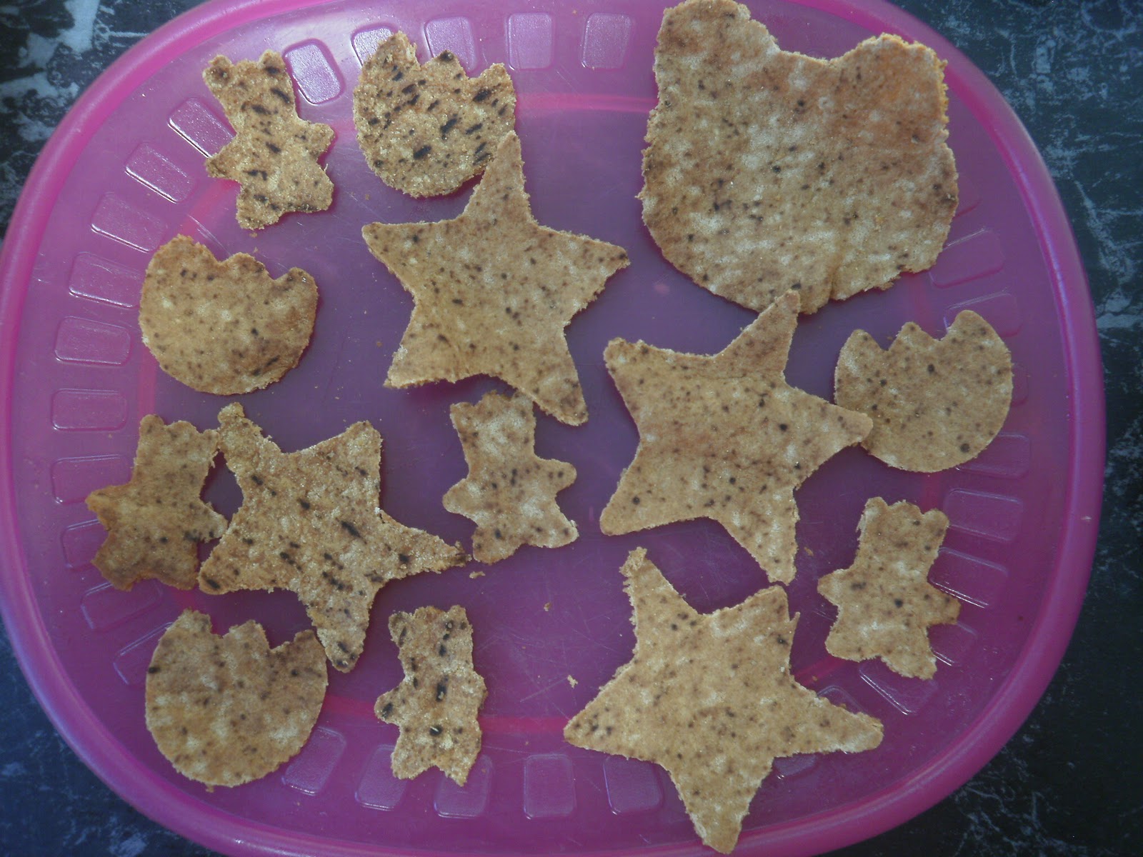 Use any shaped cookie cutters you like and just enjoy cutting different shapes from the pita and filling the tray. We made stars, tiny teddy bears, dinosaur paws (as Mr 3 called the paw shapes we used!) and bear heads.
