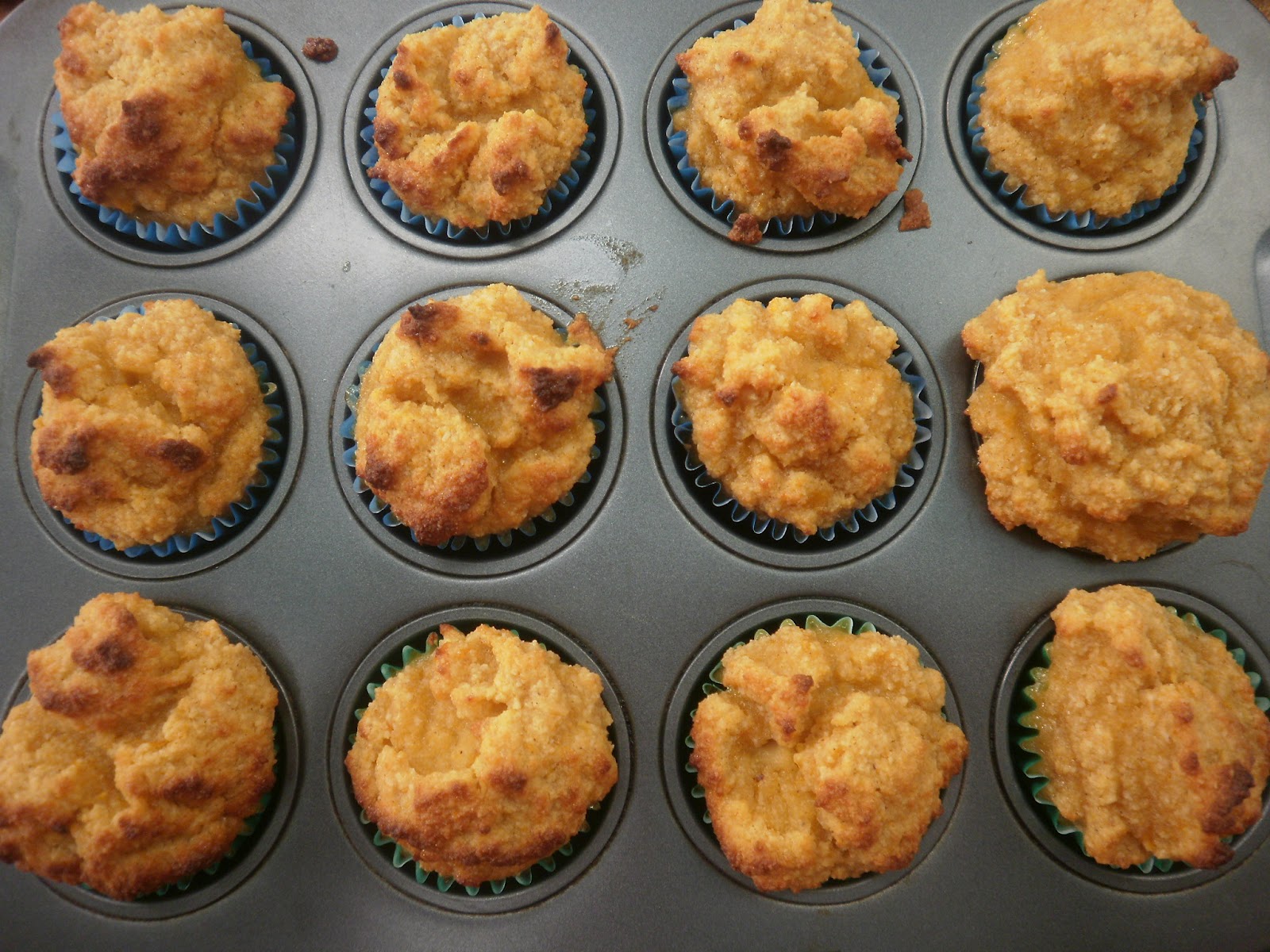 The cooked muffins have an orange hue and are incredibly moist and sweet.