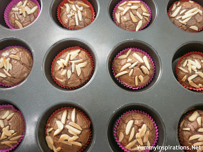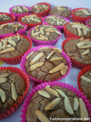 My next delicious dish was Nutella Brownie Bites, adapted from a recipe for 4 Ingredient Nutella Brownie Bites from Savory Sweet Life. I this incredibly recipe while oggling Nutella Recipes on Pinterest. The only alteration I made was to top the Nutella Brownie Bites with a sprinkling of slivered almonds (rather than hazelnuts), giving the brownies a delicious crunch.
