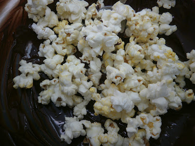 On Pinterest I’ve seen so many inspiring Popcorn Recipes, that I thought I’d do a simple Chocolate & Popcorn “Cupcake” of plain popped popcorn mixed with melted chocolate.