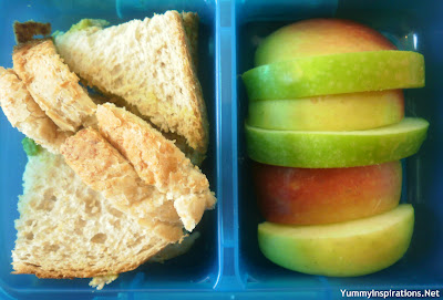 I served some Egg & “Not” Mayo Sandwiches to the boys in Muffin Tin Meals, along with fresh apples and red peppers from the farm visit.