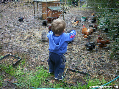Being Winter, I was excited to find farm fresh Rhubarb, Parsnips, Apples and Pears and bought bag upon bag of the yummy wintery fruit and vegetables. Best of all, the farm had a paddock full of – chickens! So, the boys may not have seen the chickens at the Egg stop, but that did at Farm number 2. (You can see Mr 2 above admiring the Chickens!) The farmer gave the boys a cup full of chicken feed, which was incredibly kind, and the boys proceeded to throw the chickens a little of the feed each and watch them come in for a peck. They thoroughly enjoyed the spectacle.